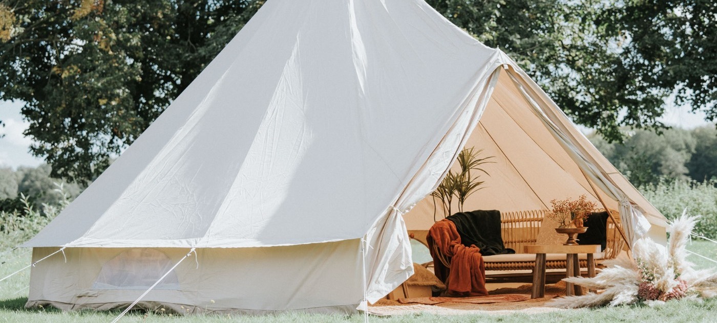 Luxe bell tenten met complete styling, verlichting en inrichting.